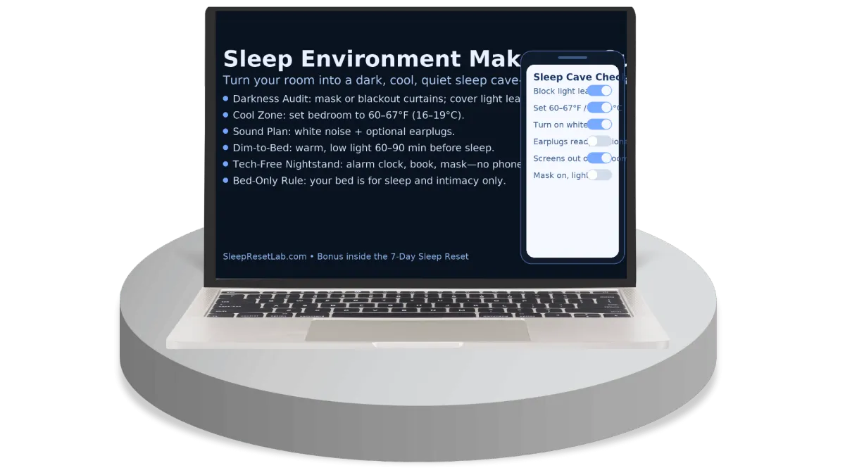 A: Because it fixes the root cause. Pills & apps only mask symptoms. This reset uses CBT-I — the gold-standard method sleep therapists use — broken into a simple 7-day plan.