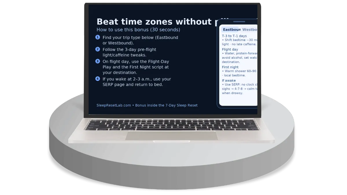 A plug-and-play plan for flights, time zones, and hotel sleep so you land sleepy at the right time — not wired at 2 A.M.